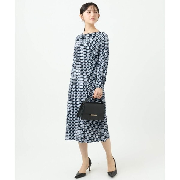 ブランド定番人気のジャージープリントワンピース。上品さのある幾何柄に落ち着いた色合いはきちんと感のある印象に。ウエストタックでフィット&フレアーのきれいなシルエットが特徴。