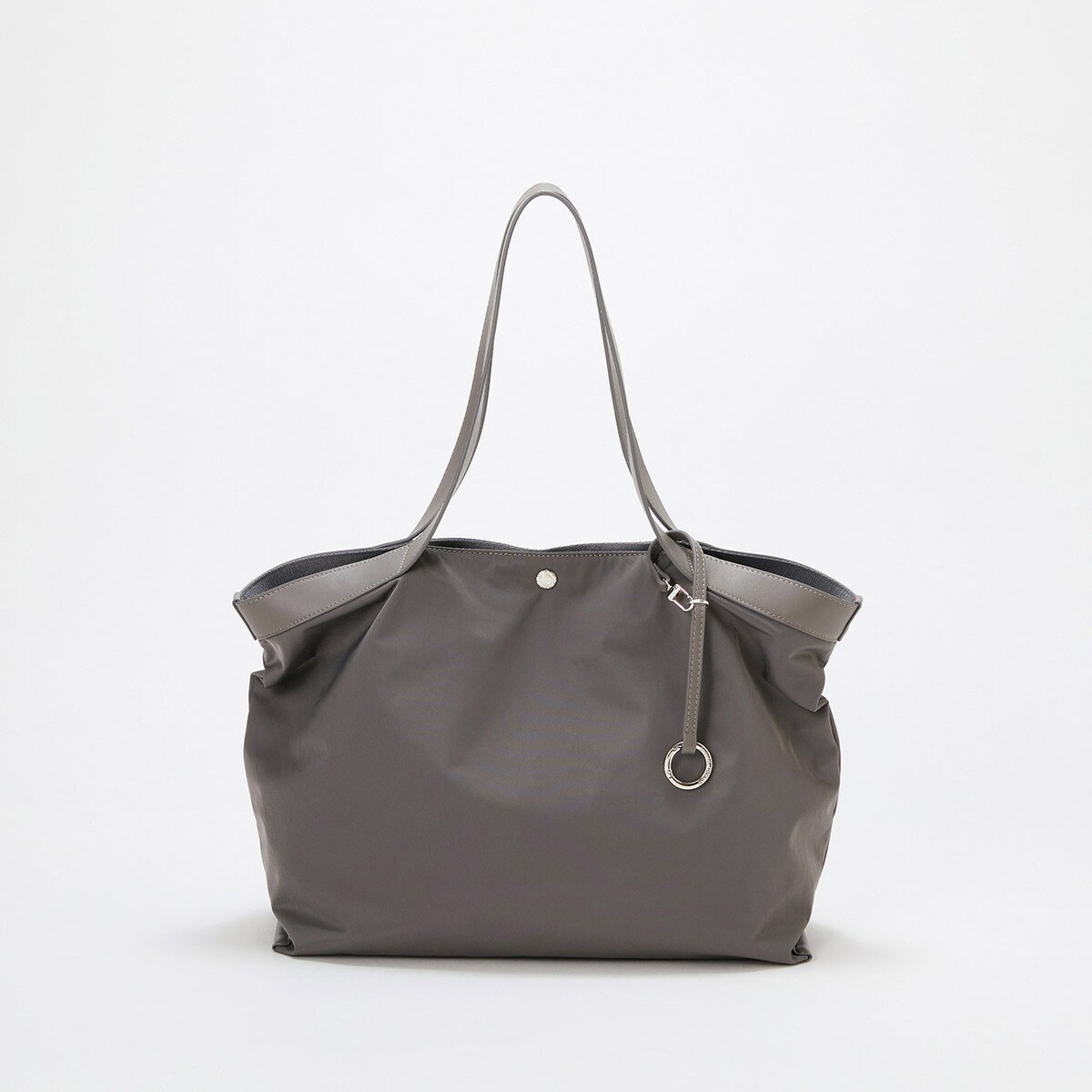 カラビナ仕様のリングチャームは飾りとしてだけでなく、鍵やパスケースをジョイントしたり、内側のDカンや他のバッグに付け替えたりして様々なアレンジもOK。