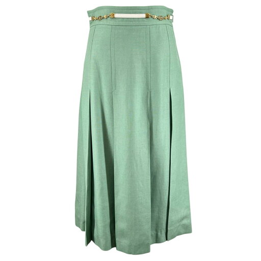 極美品☆GUCCI グッチ 761364 ウール ベルト付 フロントZIP タイトスカート ブラック 38 イタリア製 正規品 レディース【中古】