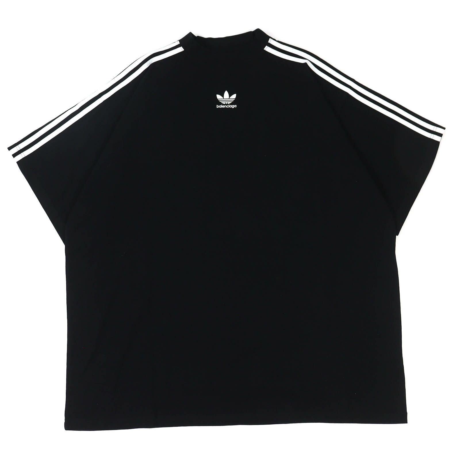 未使用品△BALENCIAGA×adidas バレンシアガ×アディダス 23SS 739101 コットン100% ストライプ ロゴプリント オーバーサイズ 半袖Tシャツ ブラック 3 正規品 メンズ