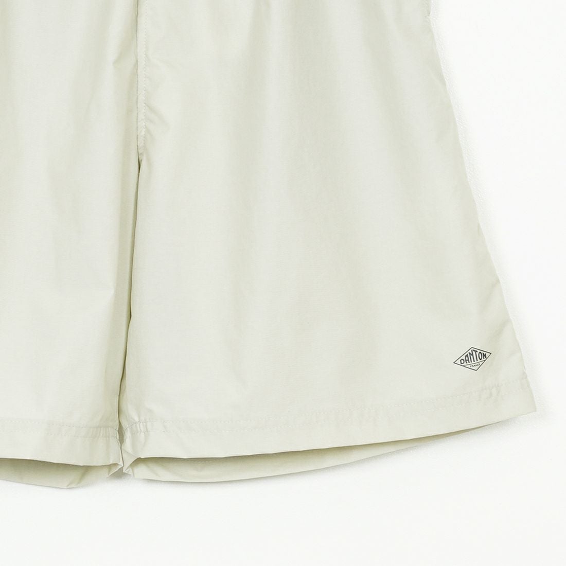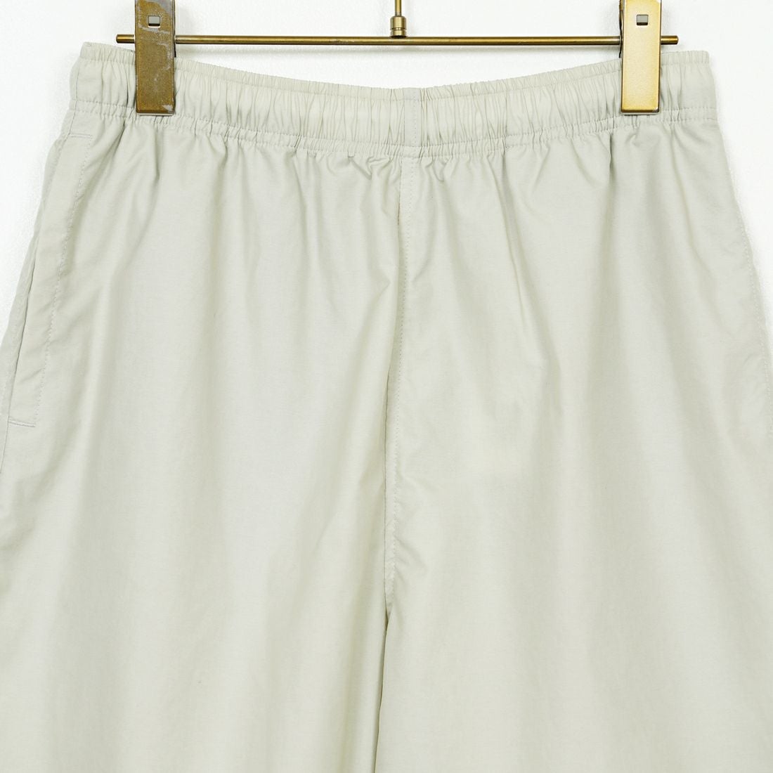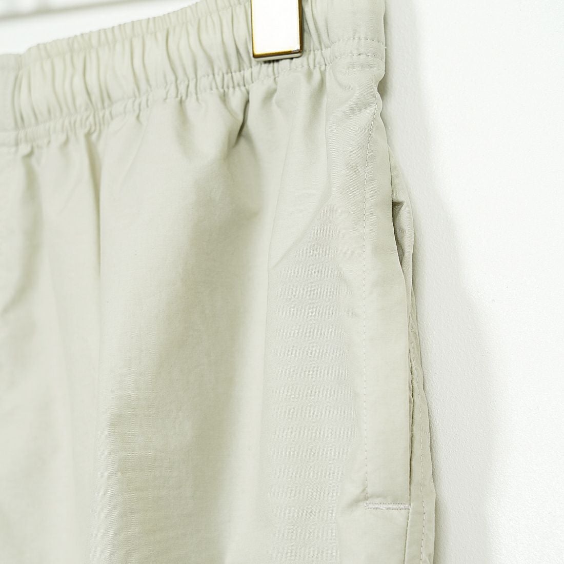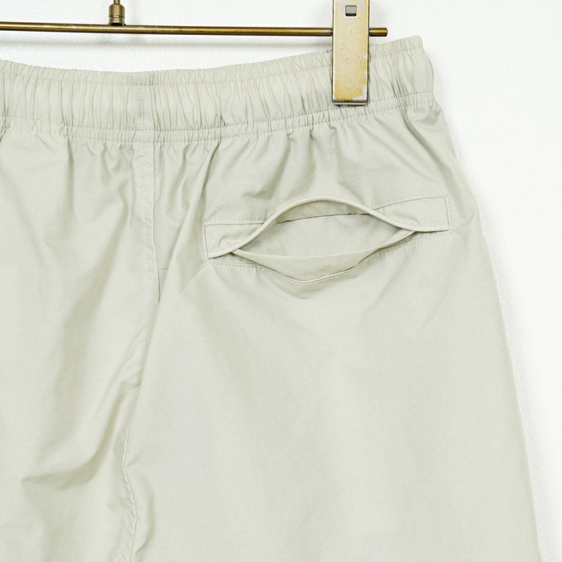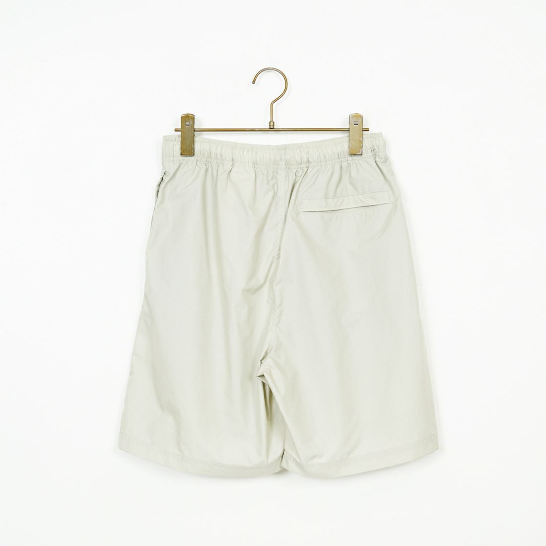 ウエストはゴムにドローコードを通したイージー仕様のショートパンツです。天然素材のようなナチュラルな風合いのスタナーナイロンを使用。裏地はなく、裏面にコーティングを施した程よいハリ感で、サイドポケットとヒップポケット裏はメッシュ仕様になっています。軽量で多少の雨にも対応できる撥水性があり、普段使いからアウトドア・スポーツシーンまで活躍するアイテムです。