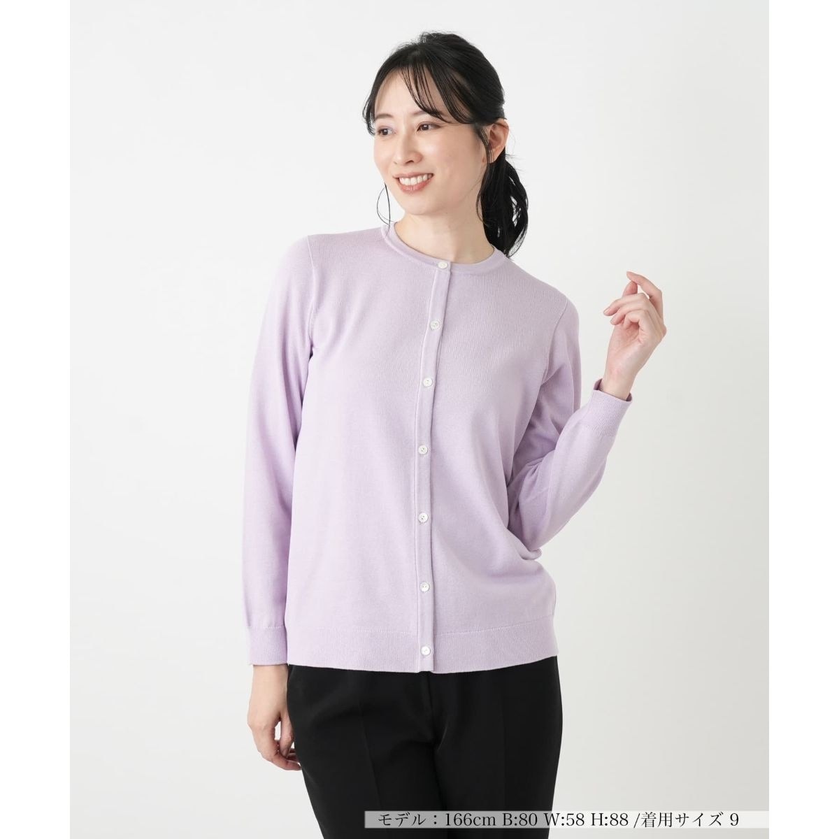 コットン、アセテート、ナイロンをブレンドし、きめ細やかに編み立てたハイゲージのクルーネックカーディガン。滑らかな肌触りのニットは、春先に最適なやや薄手の質感ながらクリーンで高級感のある佇まいが魅力です。首元を優しく包むクルーネックは、ボタンを止めて一枚着として着こなすのはもちろん、羽織りとしても洗練された印象を与えます。装飾を削ぎ落としたミニマルなデザインに、シンプルな小さめのボタンが静かなアクセントを添えています。