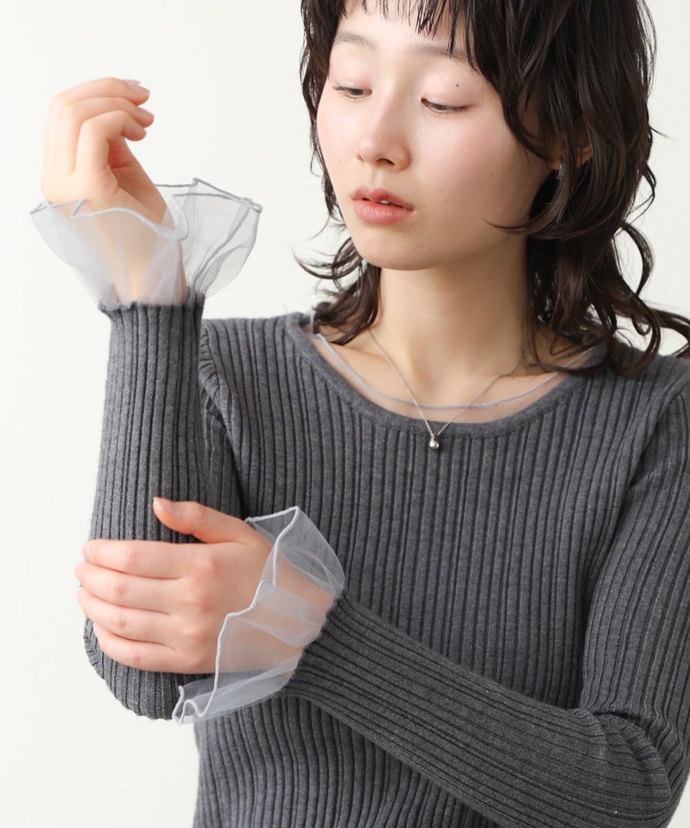 ナイロン / ニット素材 / ポリエステル素材 / アクリル素材 / レーヨン素材 / 無地 / フリル / 長袖 / ストレートショルダー / 洗える / ストレッチ / ライフスタイル / ラウンドネック / ビジネス / カジュアル