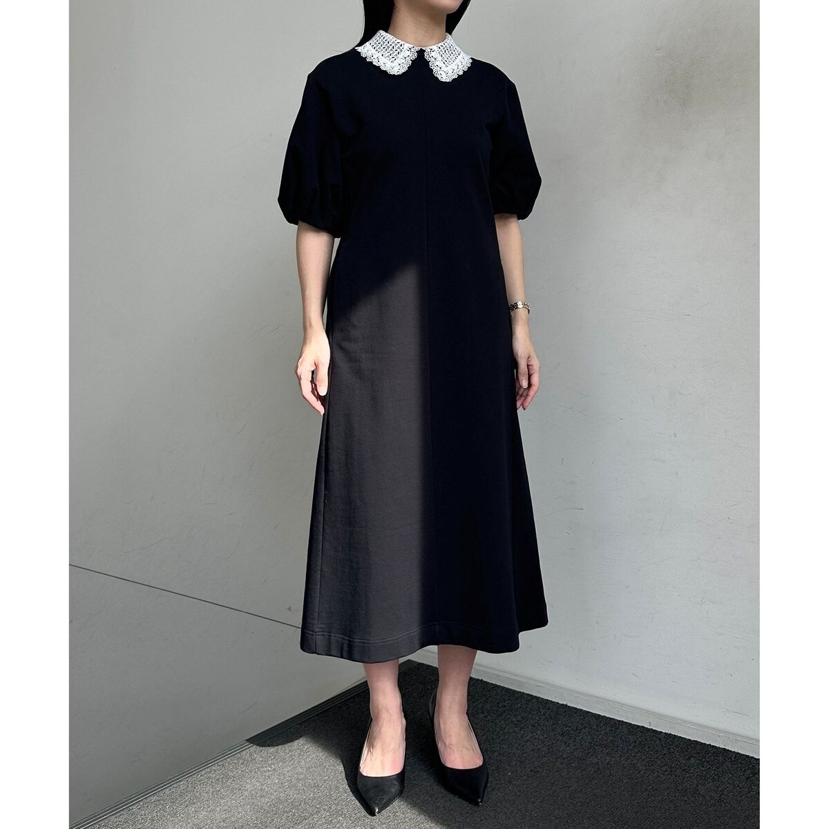 【スタッフコメント】▼身長158cm|着用サイズM (通常着用サイズM)これ1枚で華やぎコーデが完成する組曲らしいレース襟ワンピースです。