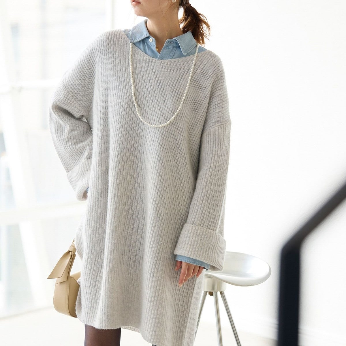 2025AW ラクーン混ニットミニワンピース/2/ナイロン/IVO/75735403