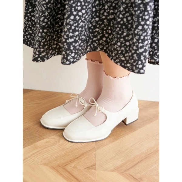 アッパー部分のリボンが可愛らしいアクセントになるパンプス。