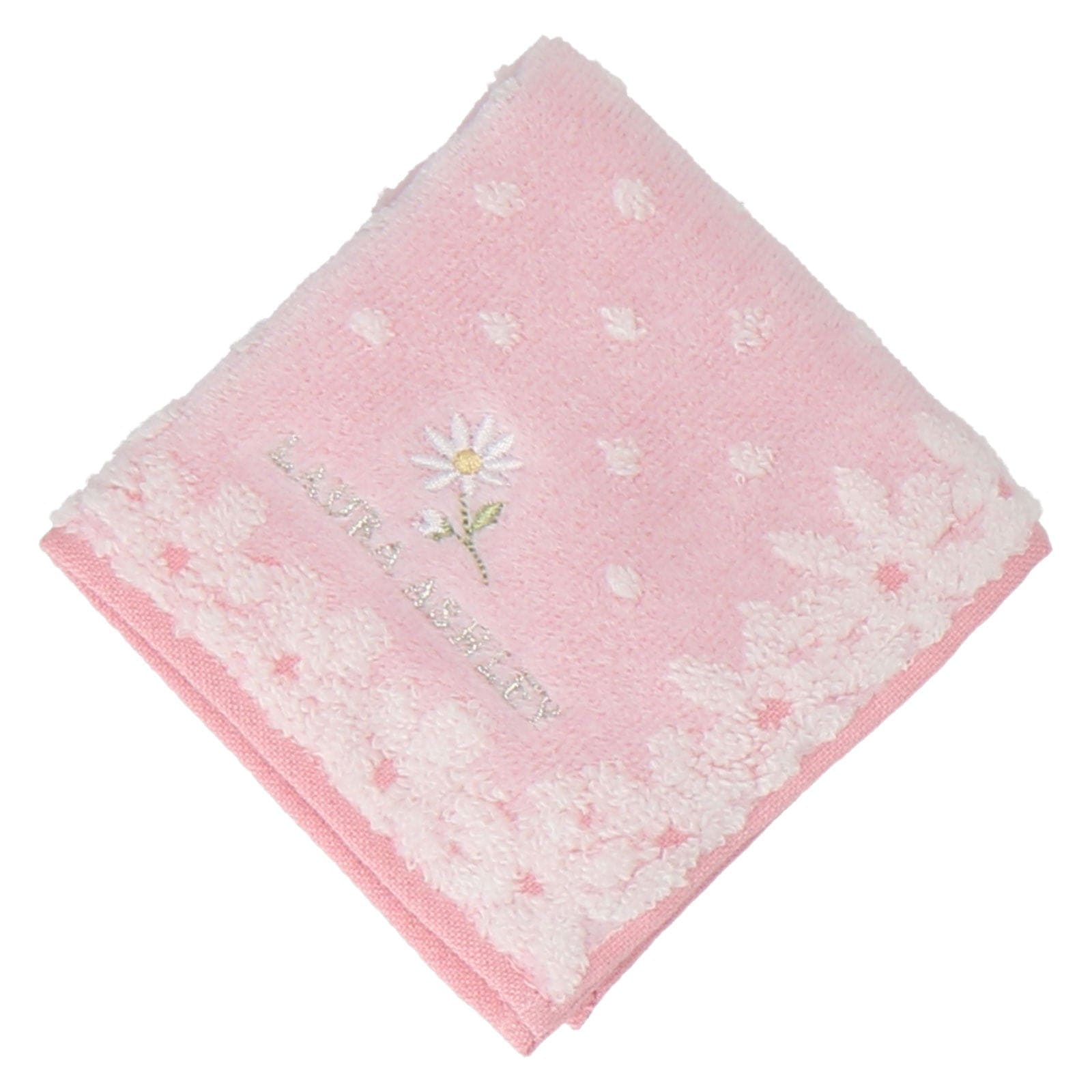 マーガレット柄にドットの組み合わせが可愛いタオルハンカチです。