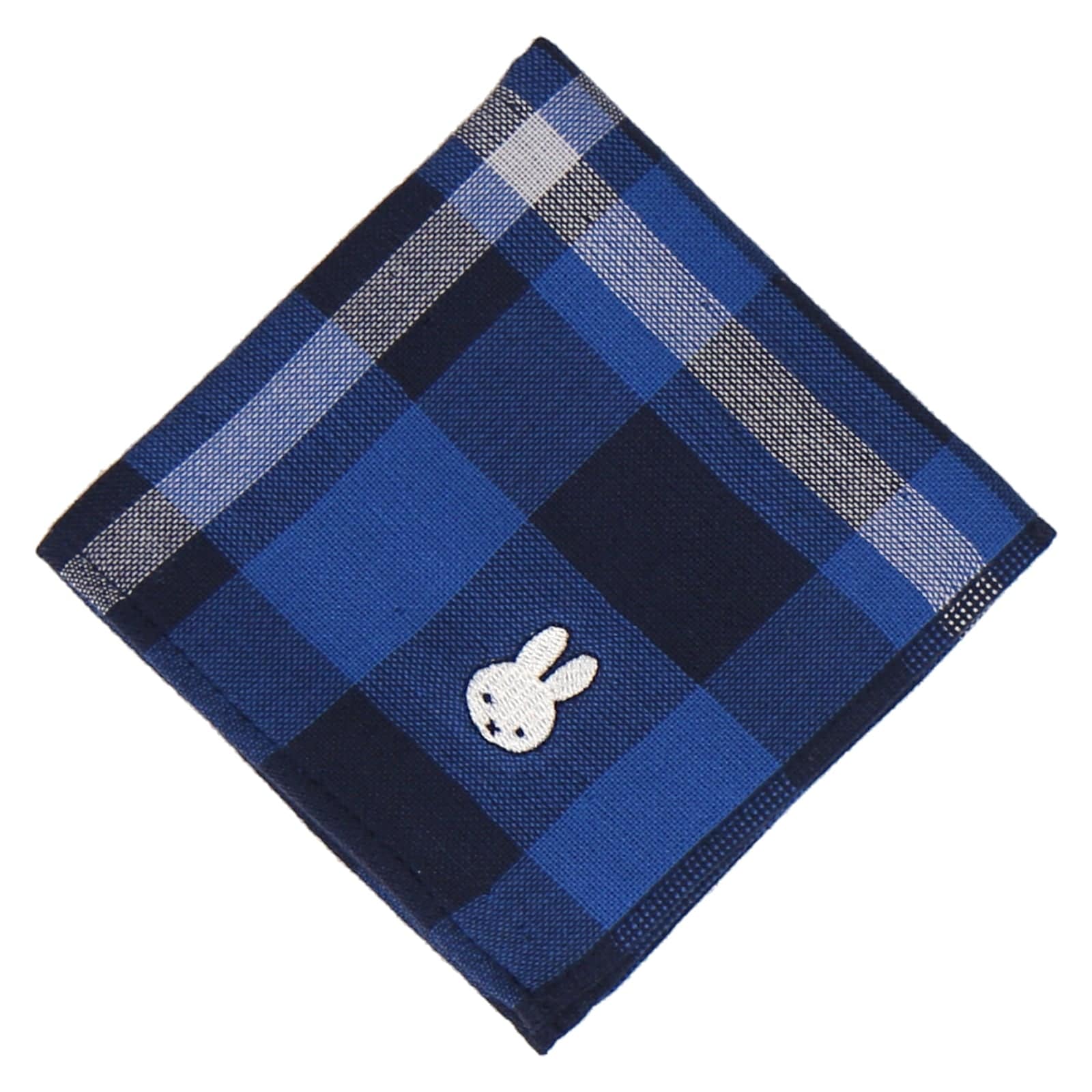 大きめなチェック柄にミッフィーやボリスが刺繍されたタオルハンカチ。