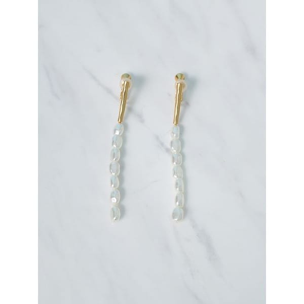 小枝のようなバー状のメタルパーツに、パールやメタルボールが連なったイヤリング。