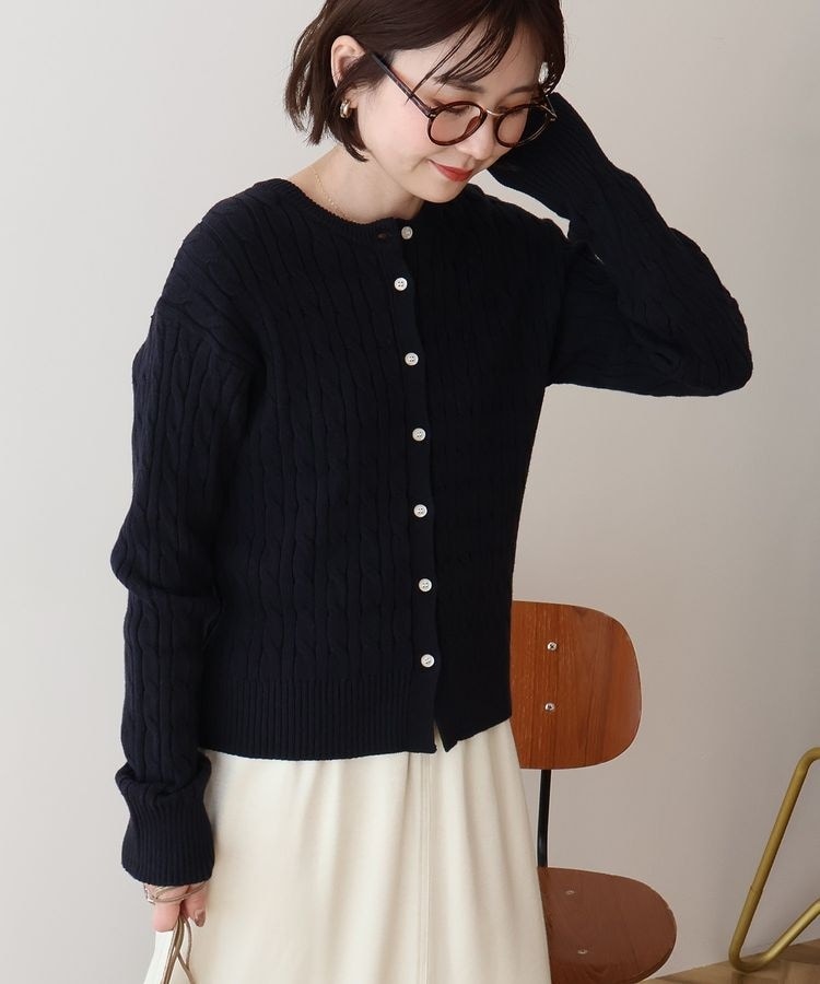 立体感のあるケーブル編みがアクセントのニットカーディガン。程よくコンパクトでありながらすっきりしたシルエットに設計しているため、シャツやロンTとのレイヤードもきれいに決まります。カーディガンとしてはもちろん、ボタン側を後ろにしてプルオーバー風にも着ていただけます。カラーバリエーションが豊富でコーデの主役になり、肩掛けにすればラフな抜け感をプラスできます。透け感[なし]