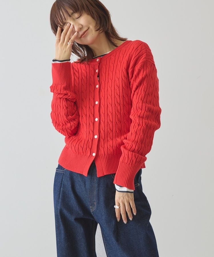 立体感のあるケーブル編みがアクセントのニットカーディガン。程よくコンパクトでありながらすっきりしたシルエットに設計しているため、シャツやロンTとのレイヤードもきれいに決まります。カーディガンとしてはもちろん、ボタン側を後ろにしてプルオーバー風にも着ていただけます。カラーバリエーションが豊富でコーデの主役になり、肩掛けにすればラフな抜け感をプラスできます。透け感[なし]
