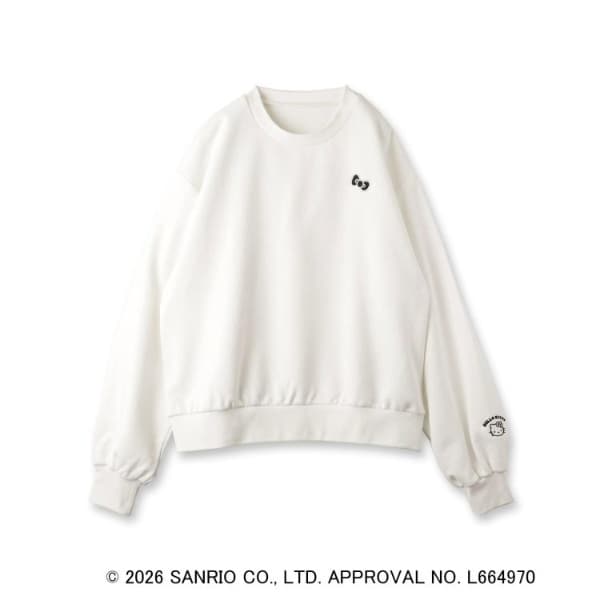 ハローキティのアイコンでもあるリボンモチーフを胸元に刺繍した裏毛プルオーバー。