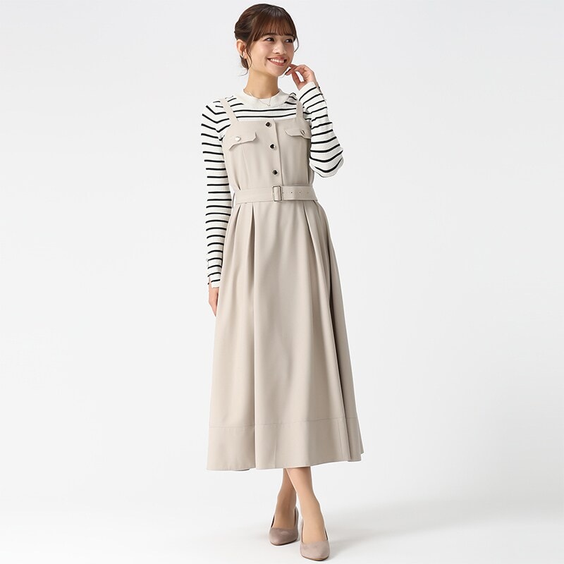 ふんわりと広がるフレアシルエットは、女性らしい立体感を演出します。