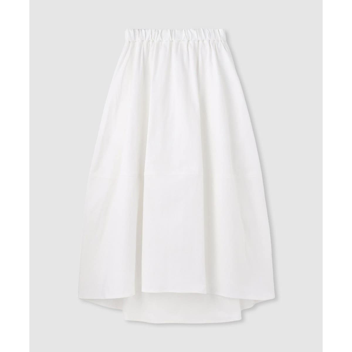 スカートはAラインではなく横の切り替えで構築的はフォルムを出しています。前後差を付け足元の軽さを出しています。