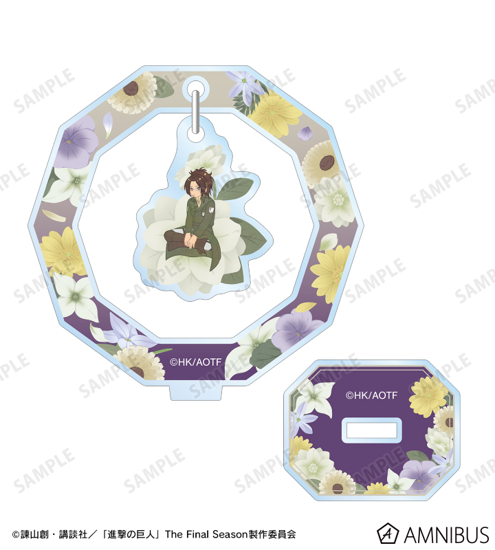 ハンジのイラストをボタニカルデザインに落とし込んで繊細なタッチで新たに描き起こし、ゆらゆら動くアクリルスタンドに仕上げました。