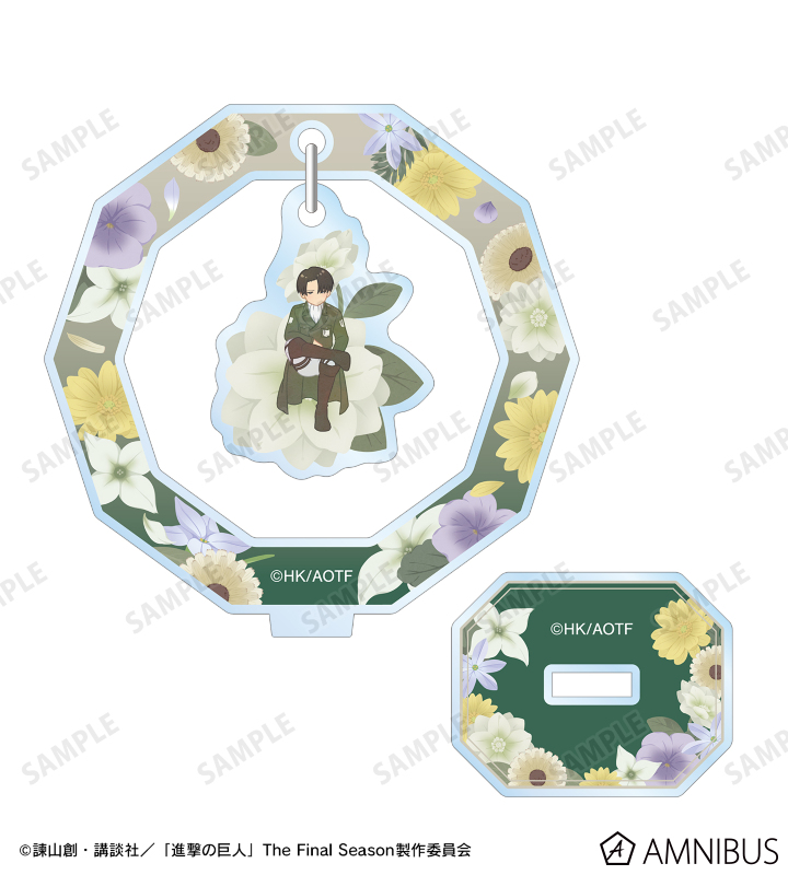 リヴァイのイラストをボタニカルデザインに落とし込んで繊細なタッチで新たに描き起こし、ゆらゆら動くアクリルスタンドに仕上げました。