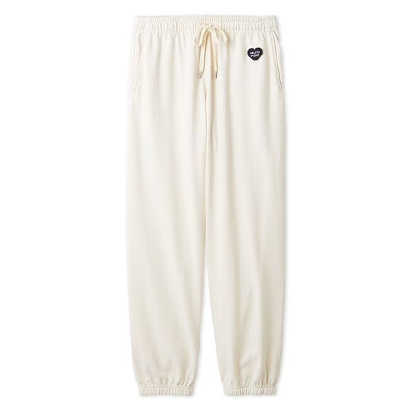 ロゴ入りのハート型サガラ刺繍をあしらった、同時期のニット&布帛アイテムとリンクしたデザインの裏毛シリーズです。裾にゴムを入れた柔らかなはき心地のロングパンツ。脇に縫い目がない作りで、寝転んだ際などにも肌当たりが優しく感じられます。両脇と右後ろにポケット付き、腰元には甘すぎないハートのサガラ刺繍をあしらいました。吸水速乾性のある糸を用いた裏毛素材なので、春先の暖かくなる時期にもさらっと快適なはき心地です。色はベーシックなクリーム、グレー、ネイビーをご用意。同シリーズのプルオーバーやパーカと組み合わせたり、ワンマイルのちょっとしたお出かけにもおすすめです。