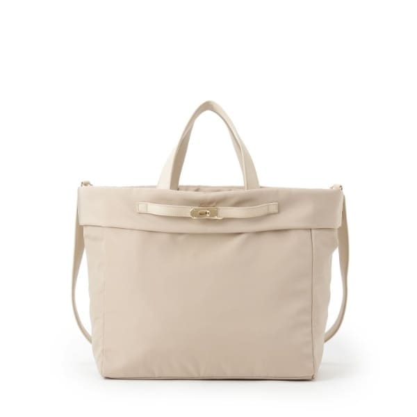 中央の金具が上品な表情を作るトートバッグ。