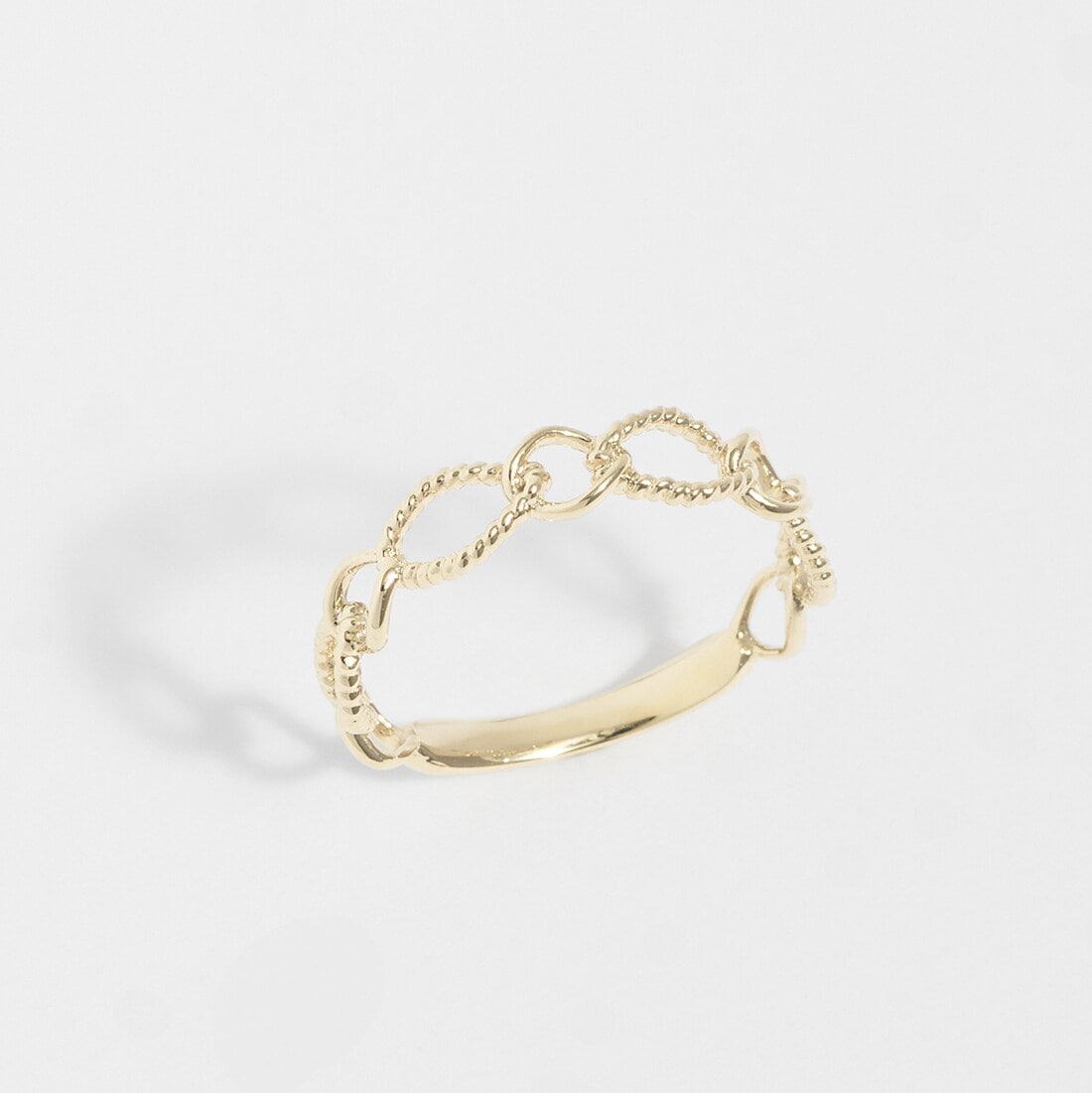 K10ゴールドの上質な輝きが目を引くチェーンモチーフリング。