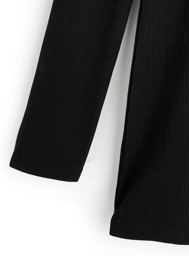 フィット感のあるリブ素材を使用しており、女性らしいボディラインを引き立てながら着心地も◎