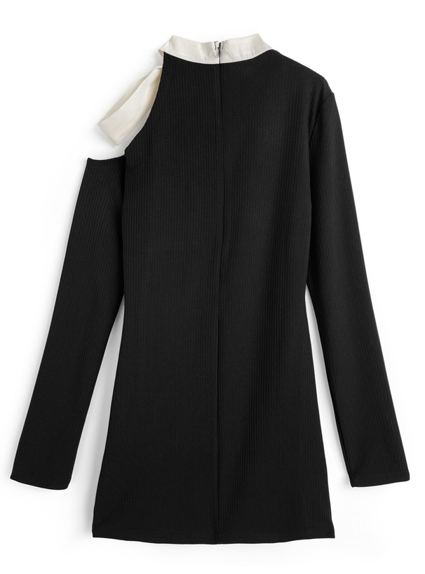 異素材の配色リボンが顔まわりを華やかに演出するミニワンピース。