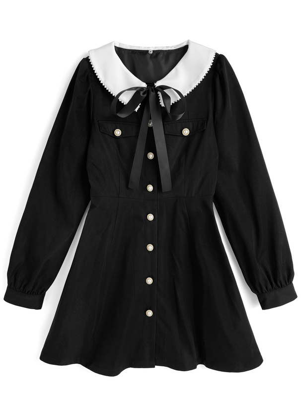 【GRL/tg903】リボン付き配色フレアミニワンピース ★