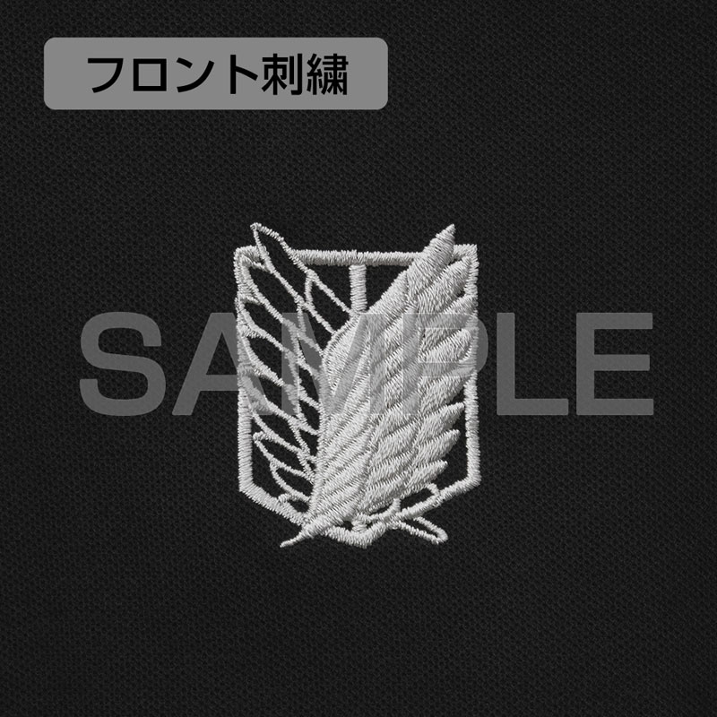 調査兵団の紋章を刺繍で表現! カジュアルやスポーツなど、様々な場面で活躍 ・調査兵団の紋章「自由の翼」をワンポイントの刺繍でデザイン! ・左袖にも、調査兵団の紋章をプリントで表現。