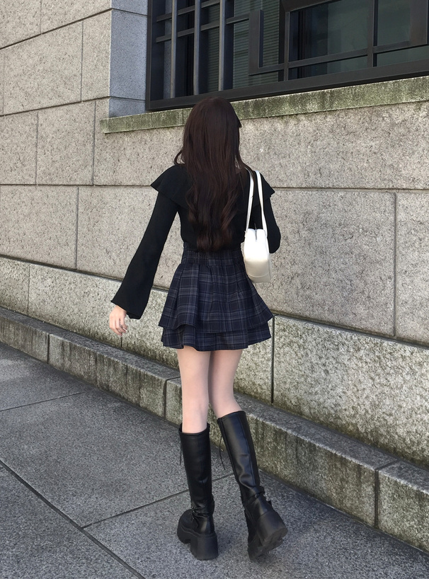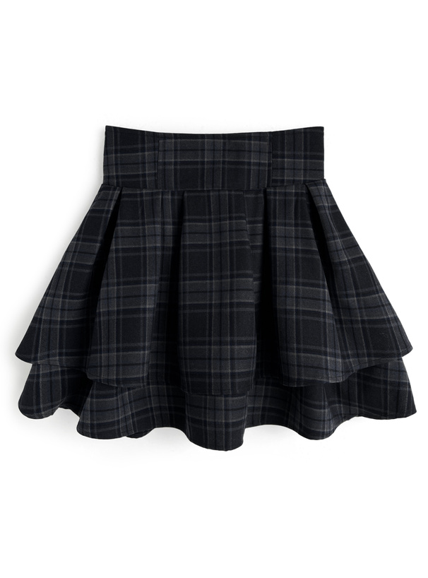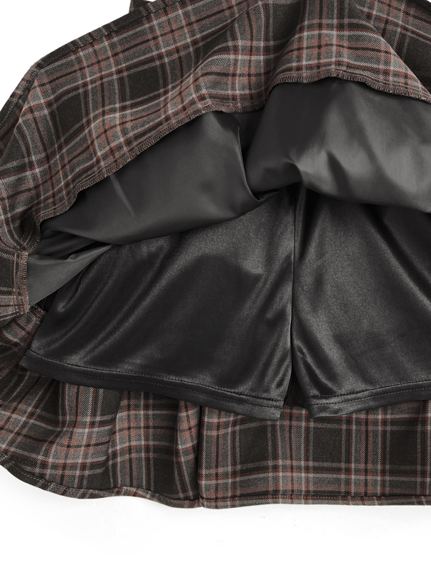 シックなチェック柄生地で仕立てた、レトロチックな雰囲気漂うミニスカート。