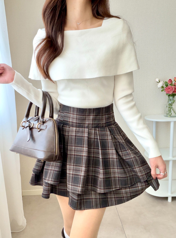 2層に重なったデザインがボリュームのあるフレアシルエットをメイク。