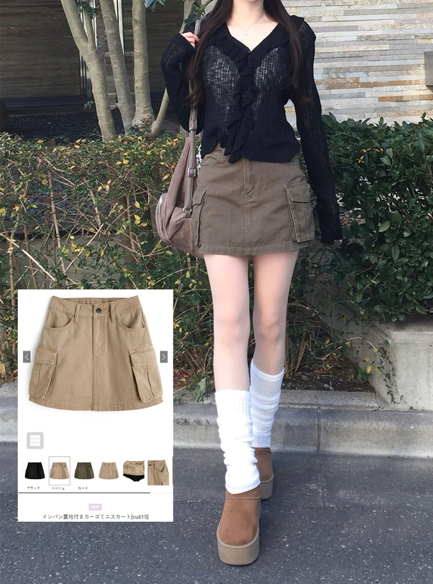インパン裏地付きデニムカーゴミニスカート[cu515]