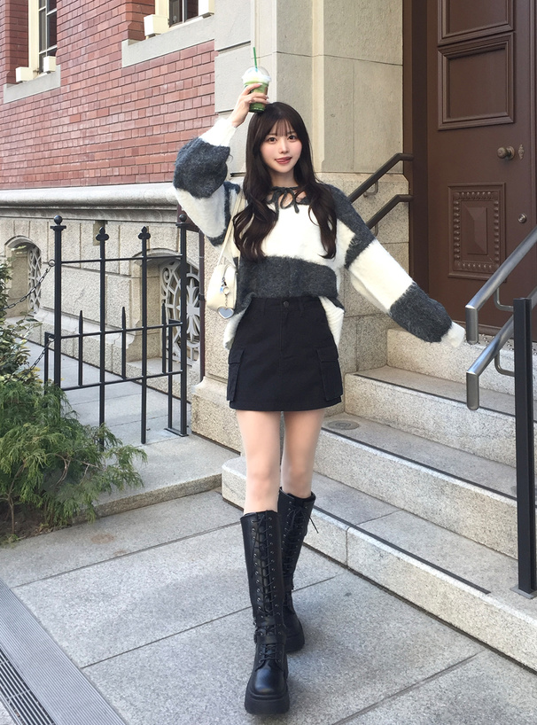 インパン裏地付きリボンカーゴミニスカート[nh135]