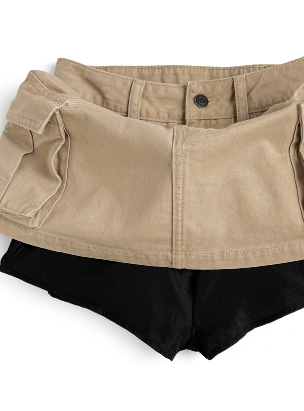 インパン裏地付きプリーツカーゴミニスカート[nh133]