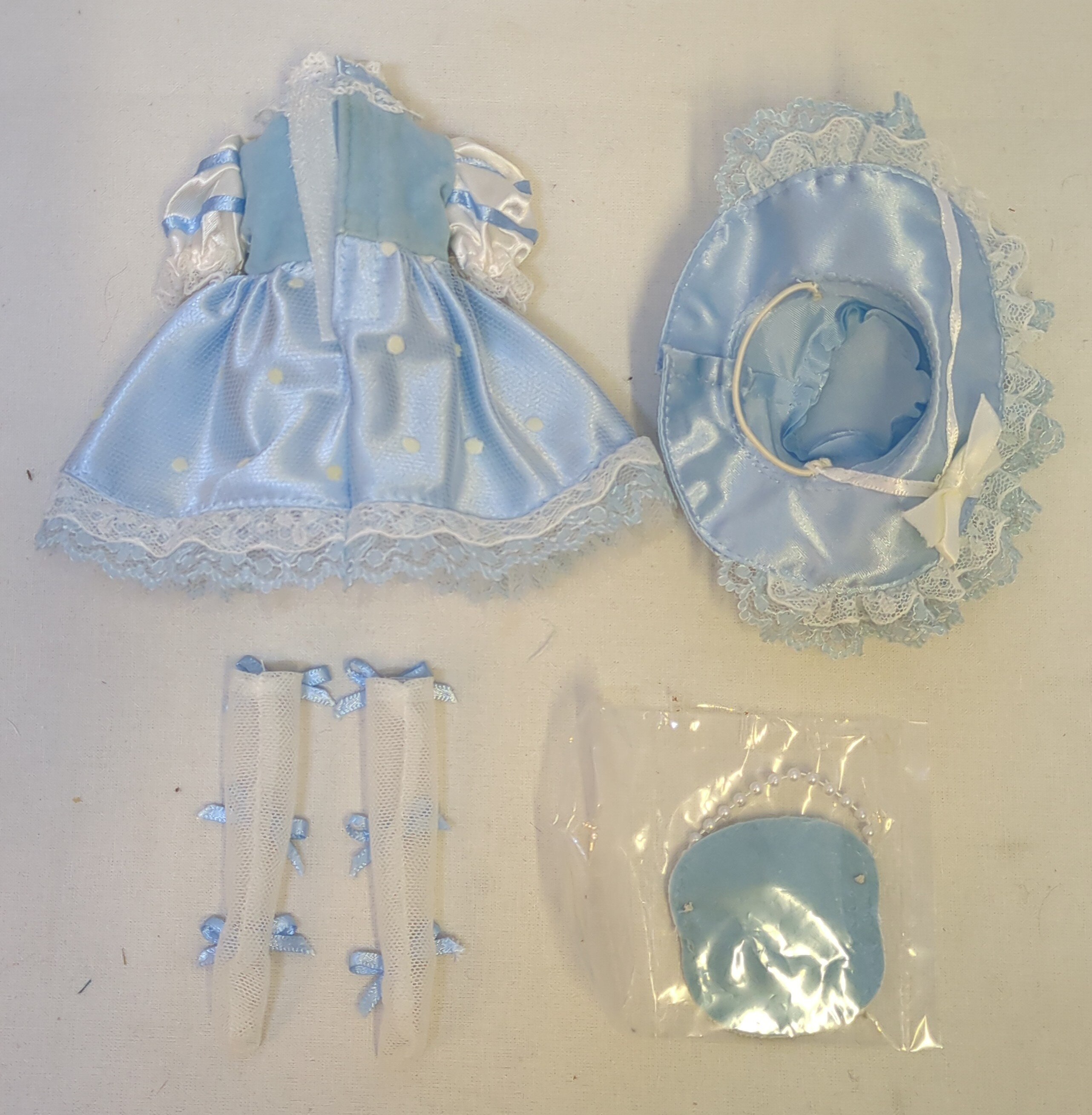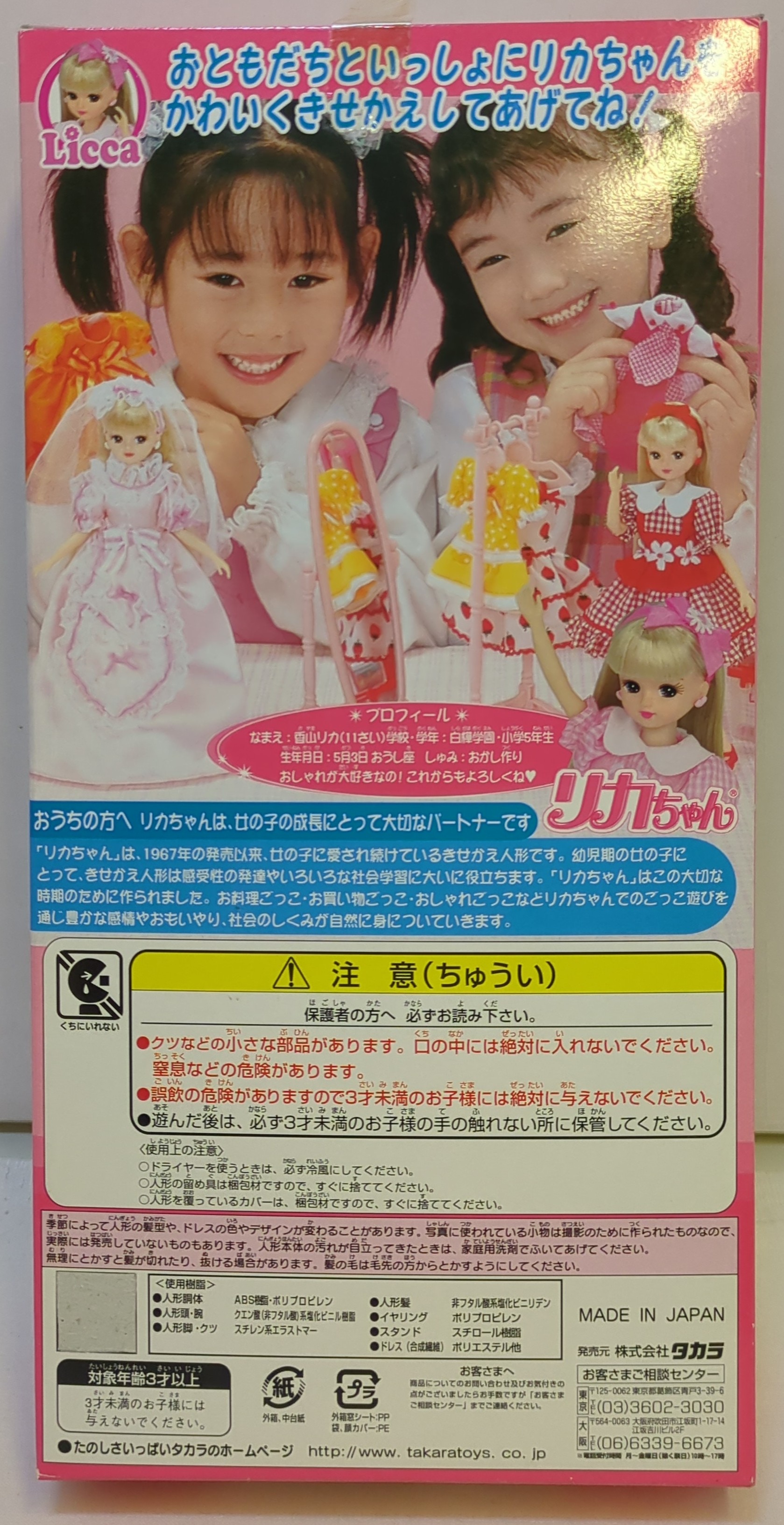 商品状態: 開封使用/スタンド欠/ドールを留めるゴム欠/腕歪み/首溶け大/脚劣化跡/ワンピース汚れ/箱切り抜き跡・シール有/箱テープ劣化・イタミ・スレ