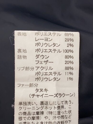 DANTON ダウン コート ネイビー フード付 エコファー 36 ロングコート ダントン Aライン レディース ベンチコート 良品