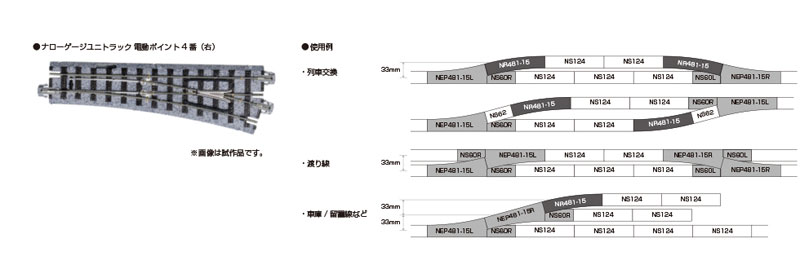 Nゲージ 【セット内容一覧】 電動ポイント4番(右) ポイントコード 絶縁片ジョイナー 補助線路NS60R×1 曲線線路R481-15°