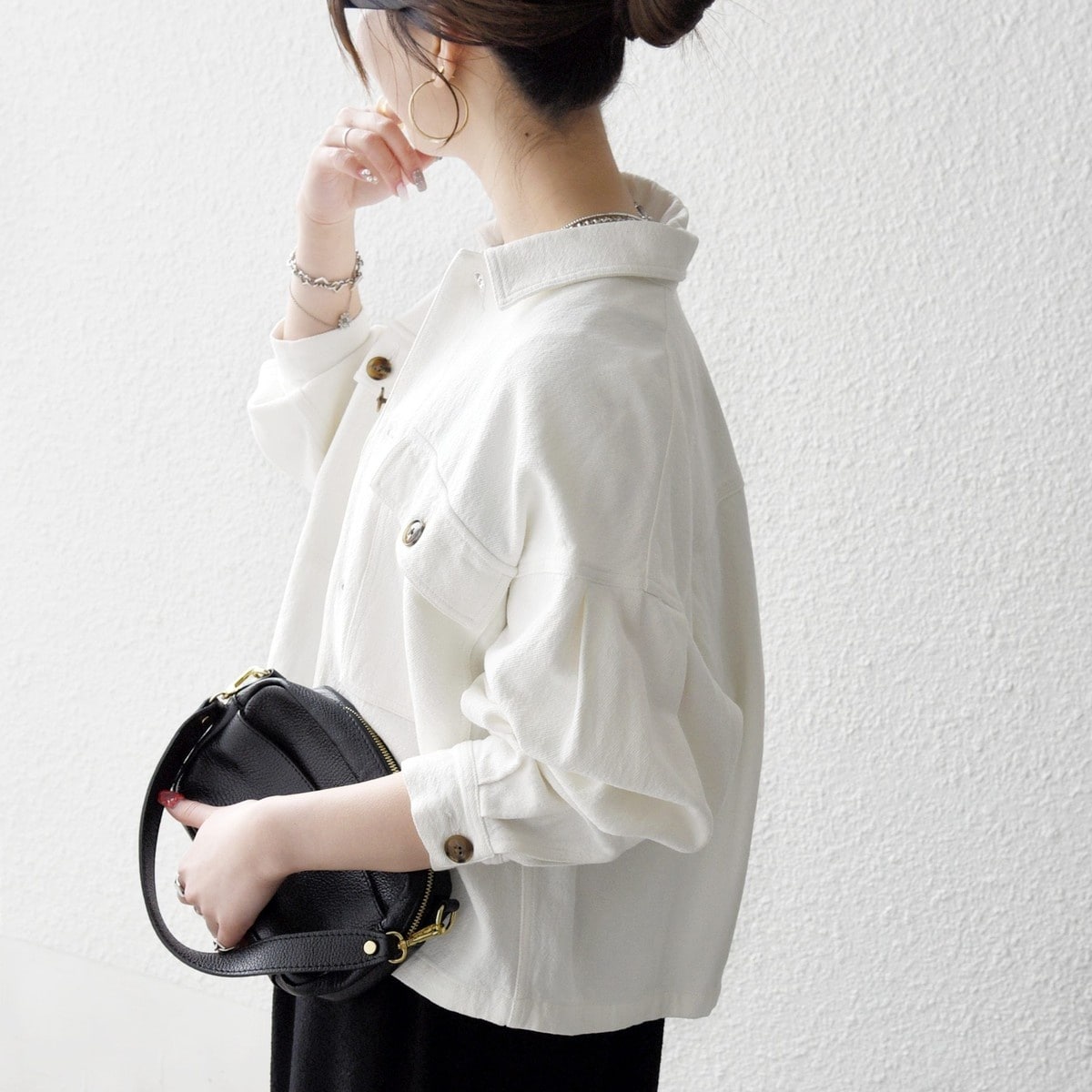 ゆったりしたワイドシルエットながら着丈は短めでバランスが取りやすく、羽織るだけでこなれ感が出るアイテムです。