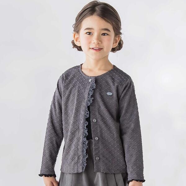 上品な透かし編み風のテクスチャが魅力の女の子用カーディガン。