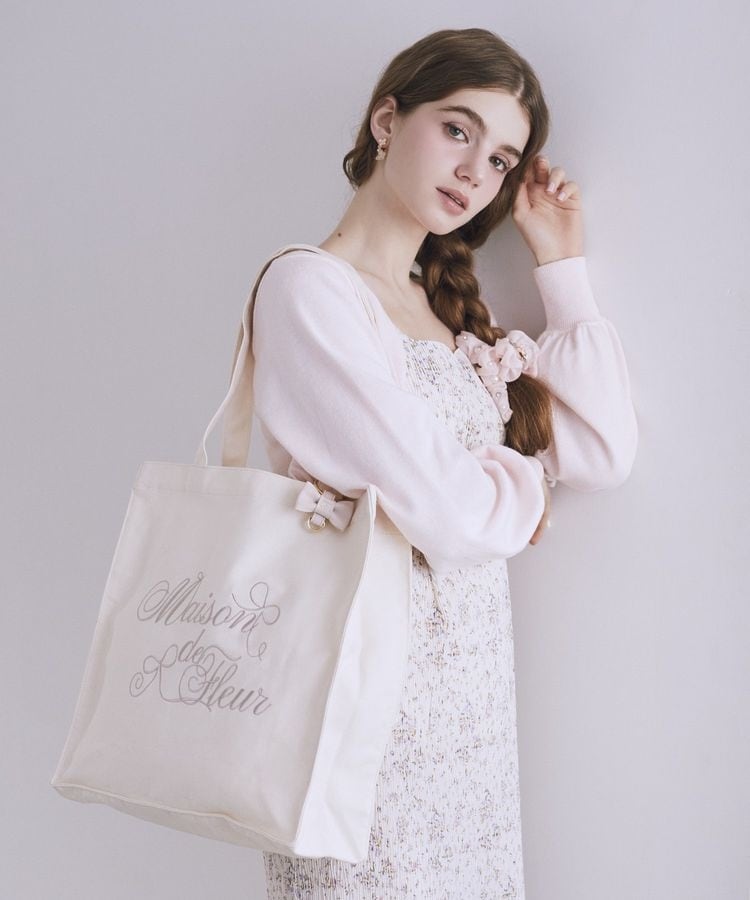Maison de FLEURブランドロゴ刺繍スクエアトートバッグ