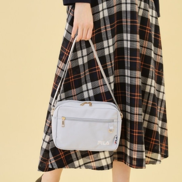 FILA別注のポリキャンバス素材ポケット充実のショルダーバッグ。
