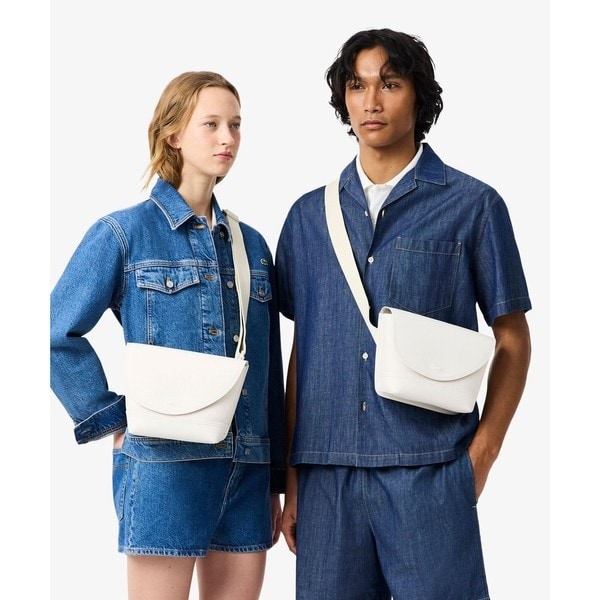 スポーティーなスタイルをエレガントにアップデートしたコンビレザーメッセンジャーバッグかっちりとしたコンパクトなフォルムにスポーティなメッセンジャーのスタイルを落とし込んだアイテム。スムースレザーとグレインレザーのコンビでさりげないコントラストをつけ、重厚感のあるエレガントな表情に仕上げました。アシンメトリーにカッティングしたフラップデザインがモダンなニュアンスを添え、エンボスで型押ししたワニロゴがスマートなワンポイントに。背面に備えたフラットポケットで、仕様頻度の高いスマートフォンやカード類へのアクセスも楽々。