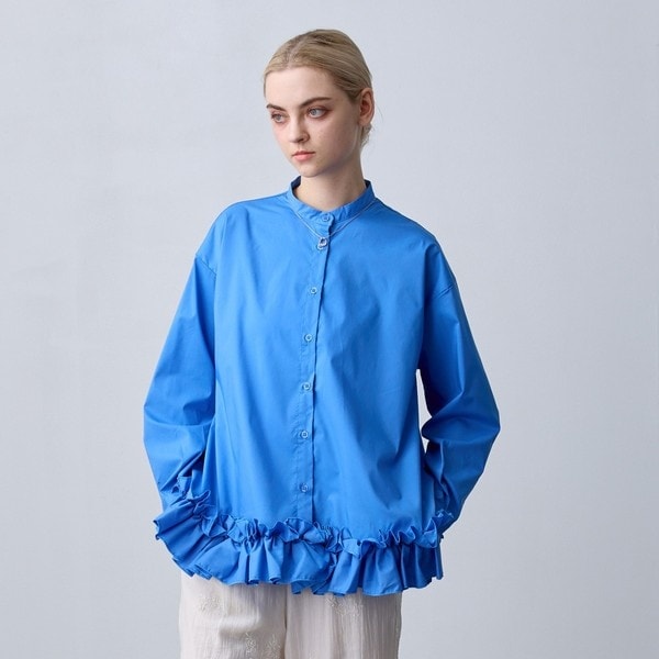 裾のボリュームあるフリルがトレンド感のあるシャツ。