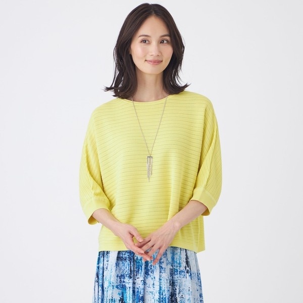 ドルマンシルエットが気になりがちな二の腕やウエストラインをカバーし、デイリーユースに重宝する一枚です。タック編みの一種で凸凹のある表面感が特徴です。ニットならではの質感でカジュアルになりすぎずキレイ目に着ていただけます。