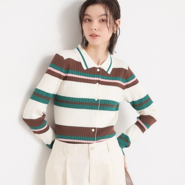 衿付きのマルチボーダーニット。