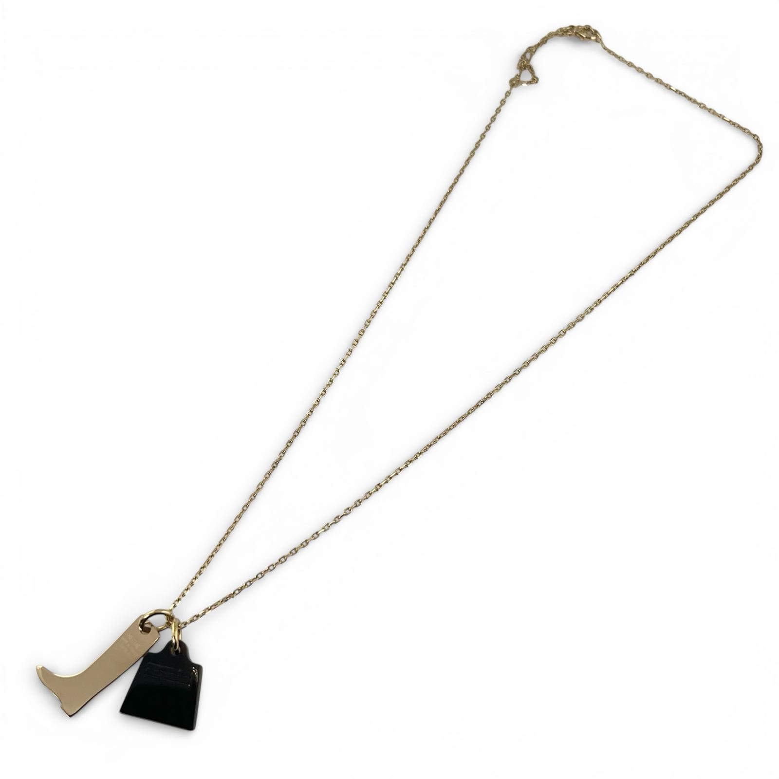 極美品 HERMES エルメス イスム バッファローホーン ネックレス ゴールド メタル レザー ブラック 箱袋付き 送料無料