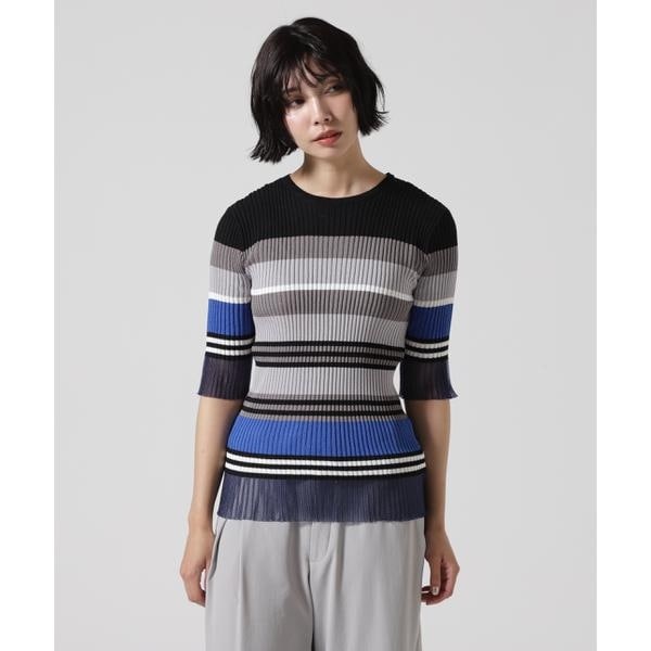 5分袖の袖口と裾はシアーニットなので、涼し気で軽見えする夏らしいニットに。