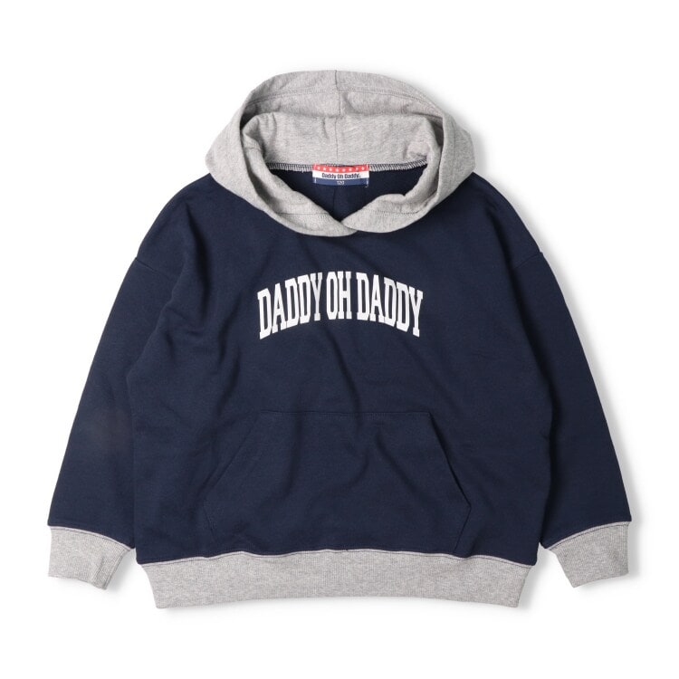 DaddyOhDaddyから新しく120~170cmのスクール、ジュニアアイテムライン。直営店では直営オンラインショップ「こどもの森e-shop」各店のみでの販売になります。【直営実店舗での販売はありません。】ロゴのプリント入りにカンガルーポケット。フードと袖口、裾は配色デザイン。秋から春まで長く着られる裏毛素材のパーカー、フーディー。男の子はもちろん女の子もデイリーに着られるアイテム。【アイテム】トップス カジュアル お洒落 オシャレ かっこいい かわいい 可愛い 普段着 デイリーウェア お出かけ着 お外着 お外遊び着 子ども服 こども服 男児 男の子 ボーイズ キッズ トドラーサイズ 幼稚園 保育園 小学校 通園 通学 小学生 2025年秋冬物新作 丸高衣料 ロングスリーブ 長袖 ジュニアサイズ スクールサイズ 男女兼用 ユニセックス 女児 女の子 ガールズ 中学校 中学生 高校生 修学旅行 林間学校 校外学習 遠足 ダディオダディ コットン100% 綿100% ネイビー 紺色
