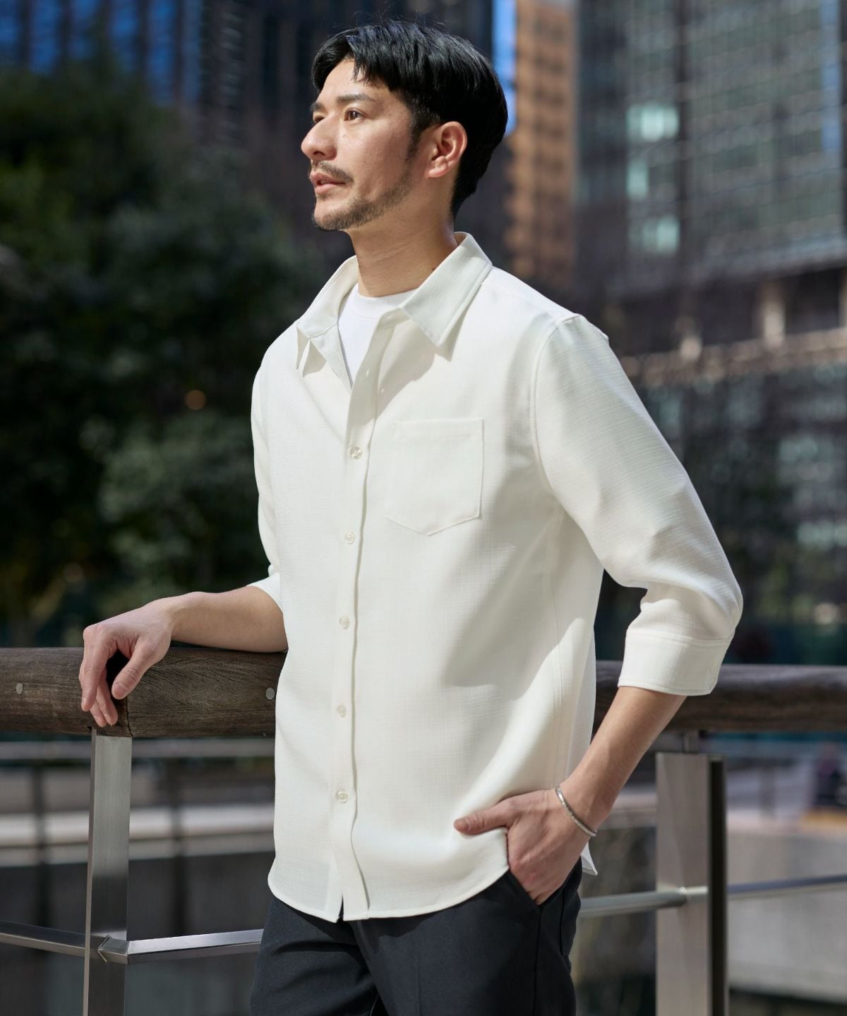 【イージーケア・吸水速乾・通気性・軽量】綿麻ライクテックキャンバスレギュラーカラー長袖シャツ