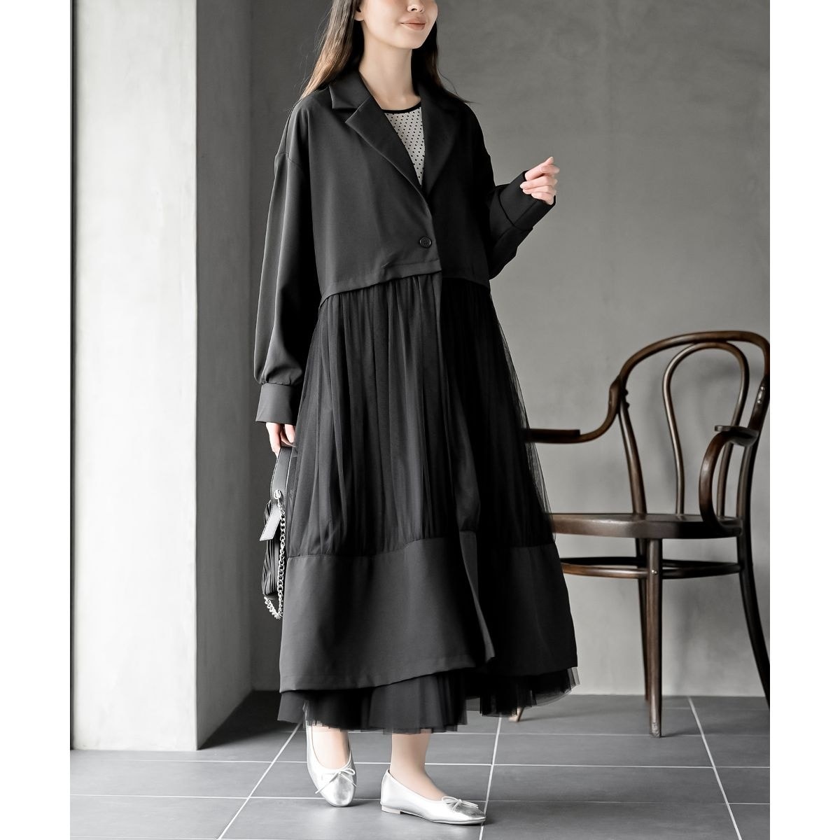 RESEXXY リゼクシー チュール ドッキング ロングコート トレンチコート 大人 チュール ギャザー 切り替え コート Aラインシルエット フェミニン エレガント 152450040301
