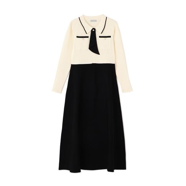 JAYRO ジャイロ ブラウス付きニットワンピース ドッキングワンピース ボウタイ