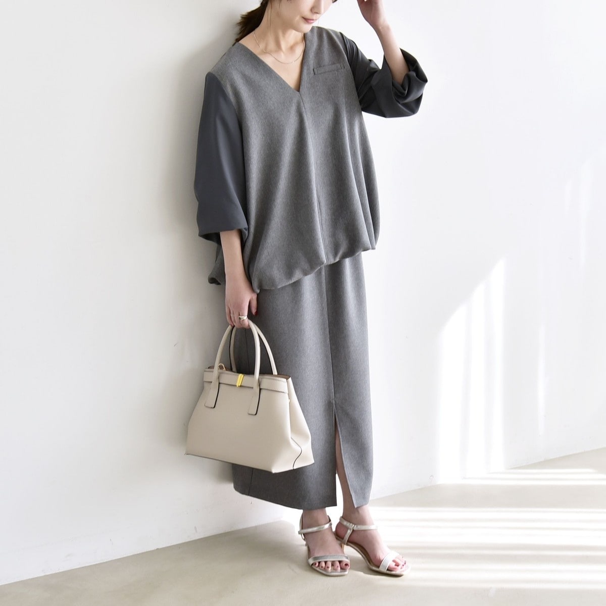 《予約》quaranciel:〈洗濯機可能〉Vネック スキッパー ロング シャツ ワンピース